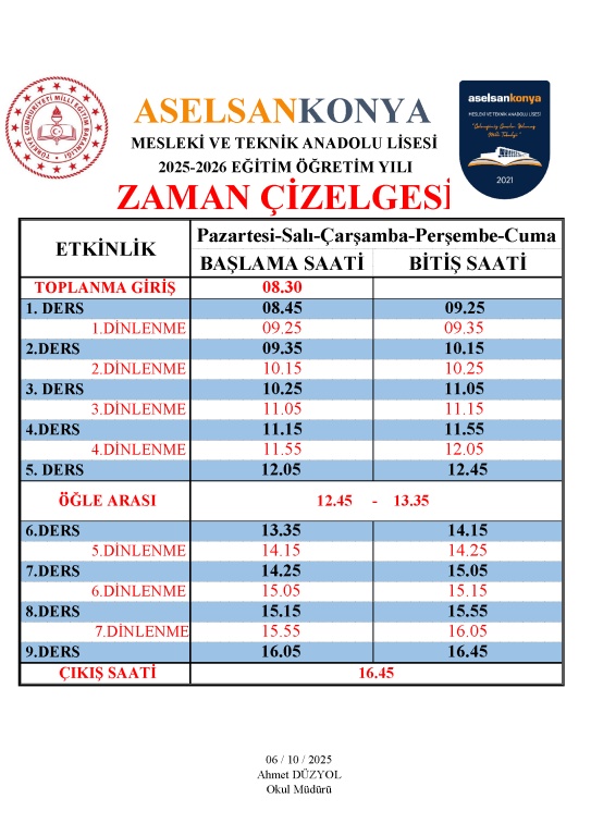 6 Ekim 2025 İtibarıyla Güncel Zaman Çizelgemiz